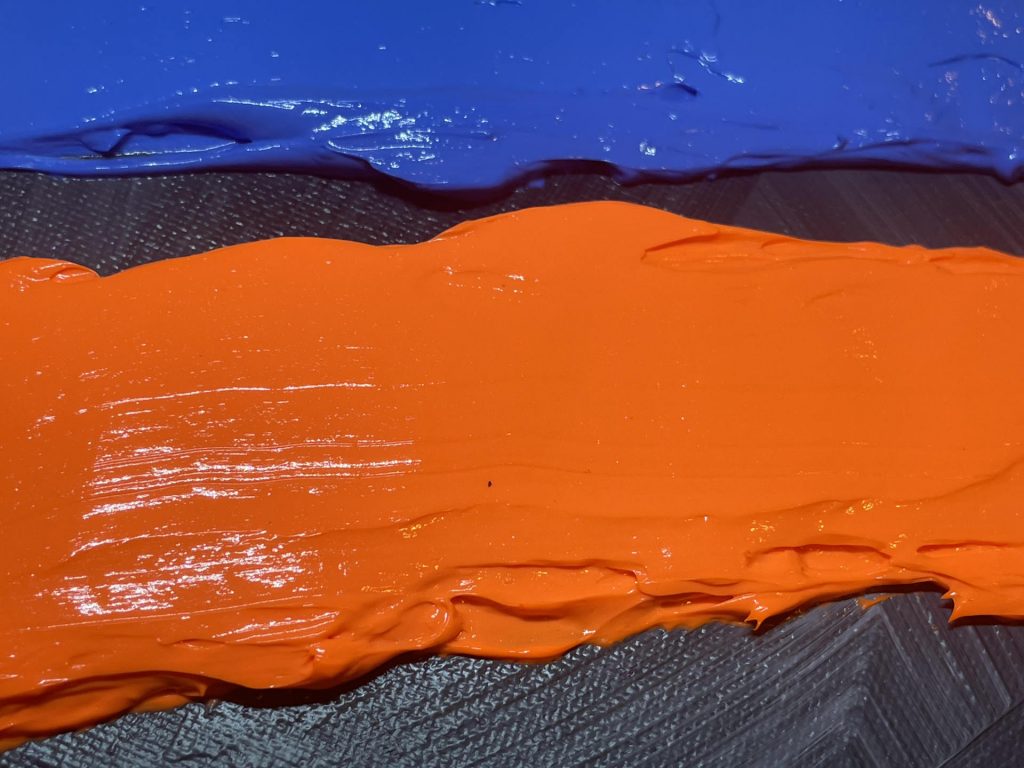 I definitely didn’t intend this as a Ukrainian political painting before it was finished. It was a spontaneous one using tupperware containers with reserved paint mixed with heavy gel media to make sure I could correct and match previous paintings. (Definitely including Xenon Cookies.) I wanted to experiment with paint-kniving on rough shapes and then…