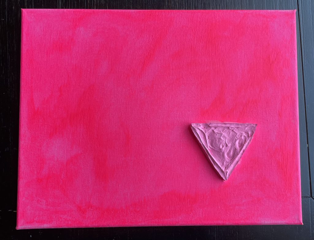 This is another molded impasto painting, and the first one with a triangle. I made the triangle mold from a cookie cutter and liquid latex in a bowl. The paint didn’t adhere well at the corners and I learned I need to be more careful to paint into the corners for this kind of shape.