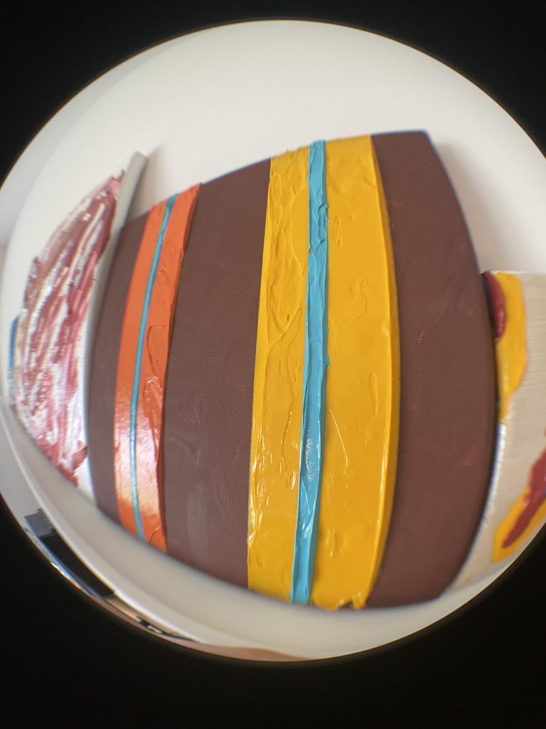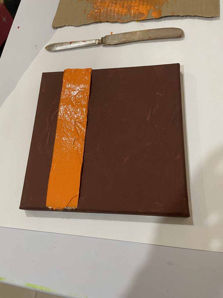The whole “making molds” thing had started to get a little oppressive, due to all the weeks of drying time. However, all my experiments of just slapping on paint with a paint-knife kept looking too gloppy and childish to me.